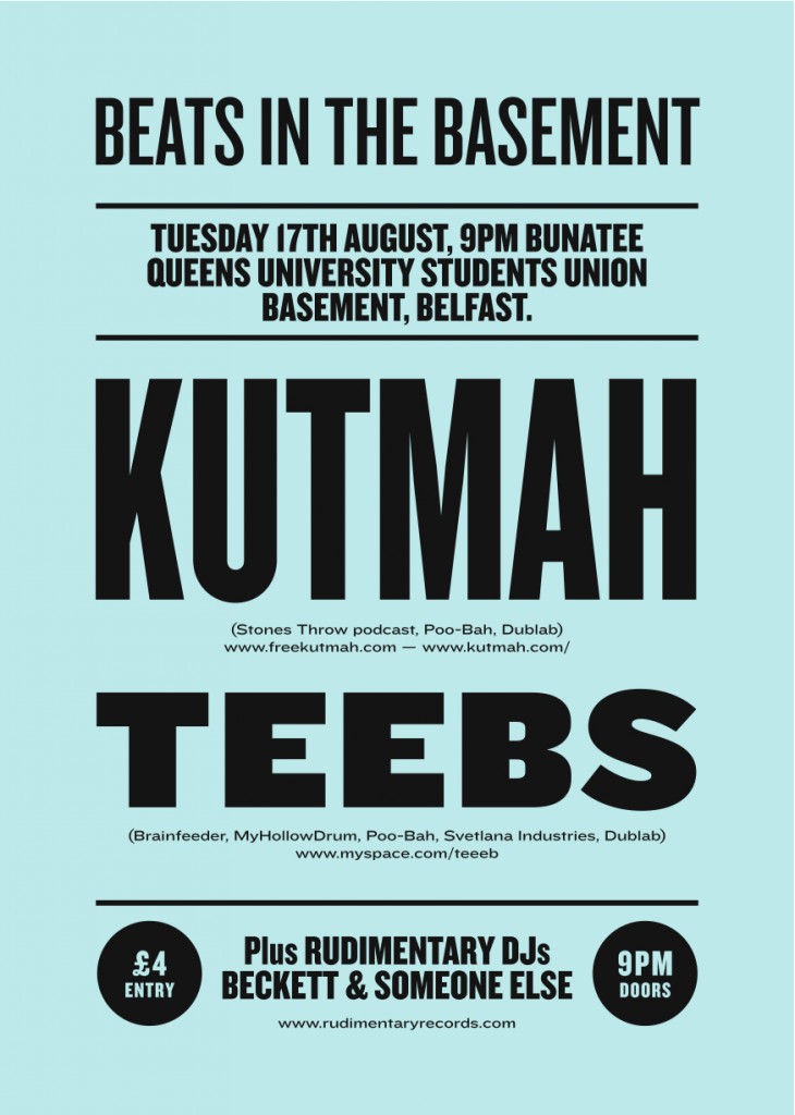 RUDIMENTARY RECORDS will provide the support with BECKETT & SOMEONE ELSE. These guys have been at the forefront of all innovative electronic music nights in Belfast for sometime and have some quality releases out from ROUGHQUEST & YORU.