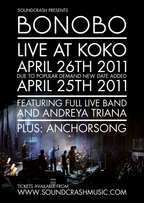 BONOBO have been trudging the road hard and making an excellent live-performance name for themselves on the way. They’re joined by collaborator ANDREYA TRIANA for these two dates at Koko in London. . Find Groovement’s Andreya interview here.