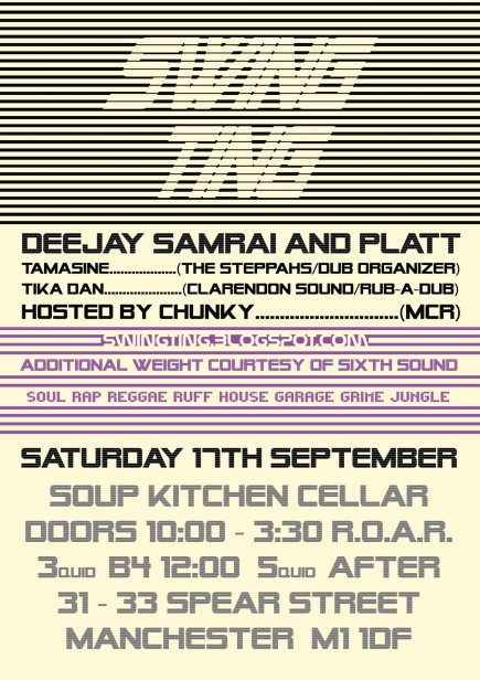 manchester Reach: SWING TING // September, Soup Kitchen Manchester 29 August 2011 agentj 0 Comments swing ting Facebook event Boost the signal: Click to share on X (Opens in new window) X Click to share on Facebook (Opens in new window) Facebook Click to share on WhatsApp (Opens in new window) WhatsApp No related posts.